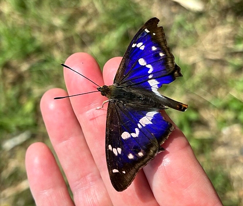 Alleen de mannetjes hebben de spectaculaire paarsblauwe iriserende glans. De blauwe kleur wordt goed zichtbaar onder een bepaalde lichtval. De mannetjes zijn zeer territoriaal. Ik heb ze zelfs agressief gedrag zien tonen naar overvliegende vogels. De vrouwtjes zijn bruiner en lijken zich meer te verstoppen. Boswilgen zijn de favoriete waardplanten, liefst in een vochtig en open loofbos gebied. Ook boven hoge bomenrijen patrouilleren de mannetjes fanatiek om hun territorium te verdedigen. De balts is hoog in en boven de boomtoppen. Het zijn vaak de mannetjes die naar de grond komen. Ze voeden zich met mineralen en zouten uit uitwerpselen, kadavers en soms zelfs mensenzweet. Bloemen worden nauwelijks bezocht. Ook honingdauw, boomsap, rottend fruit en vochtige aarde staan op het menu.